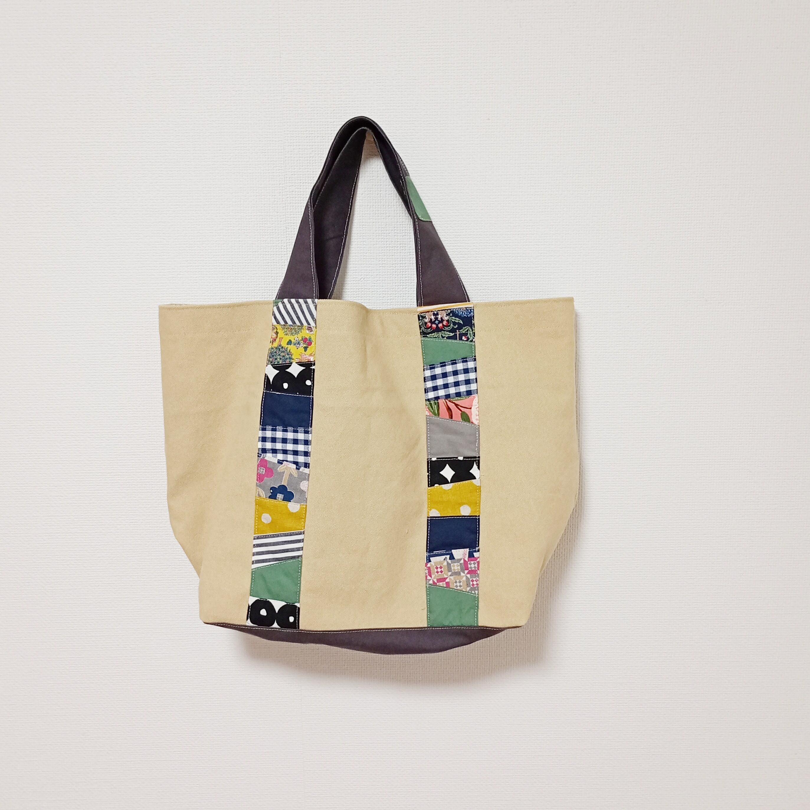 生地の色や柄の出方、並べ方はバッグごとに全部ちがうから、「世界にひとつだけ。あなただけのバッグ」に。